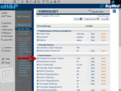 Try -for example- looking for the Heart Failure H&P. It will be found on the Specific-H&Ps, Cardiology Section,