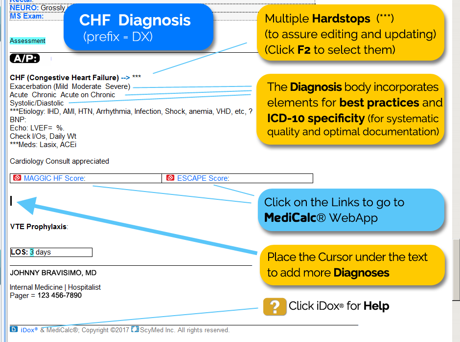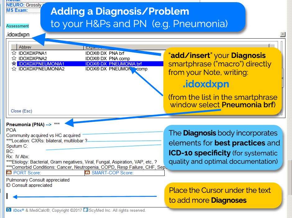 iDox® modular build allows you to add/insert multiple diagnoses/problems to your H&Ps and Progress Notes (PN).
